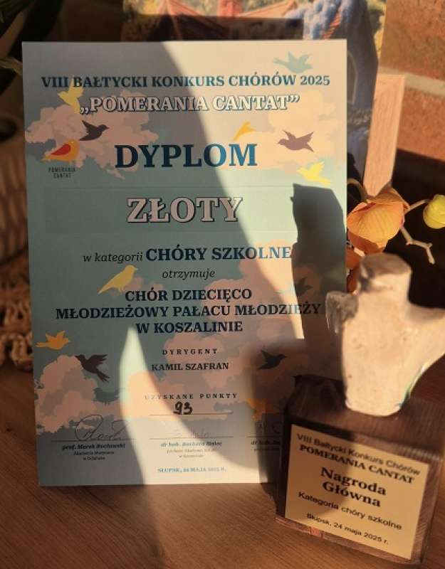 24.05.2025 r., to był długi i pracowity dzień. Podczas VIII Bałtyckiego Konkursu Chórów "Pomerania Cantat" w Słupsku, Chór Dziecięco-Młodzieżowy Pałacu Młodzieży pod dyrekcją Kamila Szafrana, zdobył :