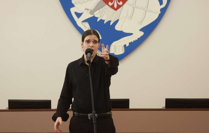 Uroczystość w Urzędzie Miasta uświetniło Studio Piosenki Polskiej p. Kamila Szafrana.
