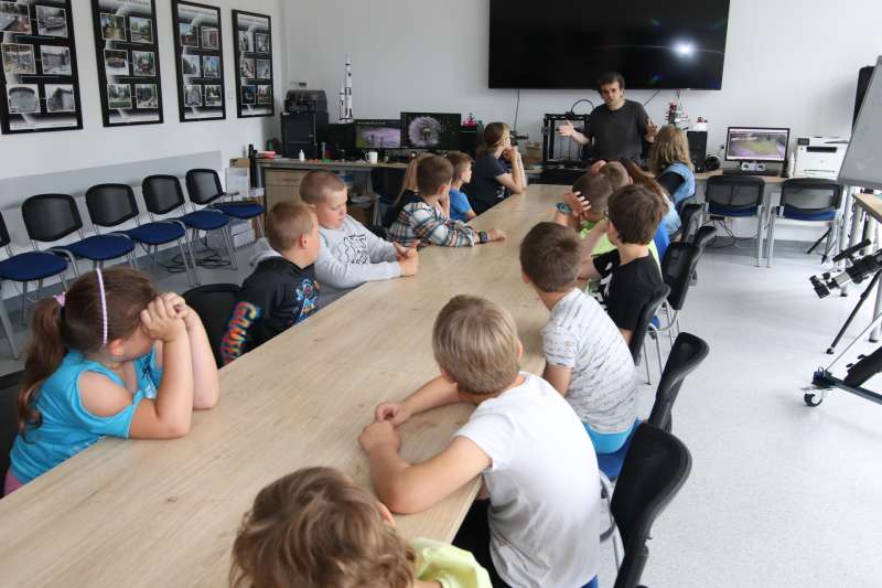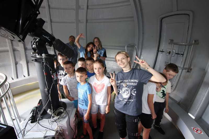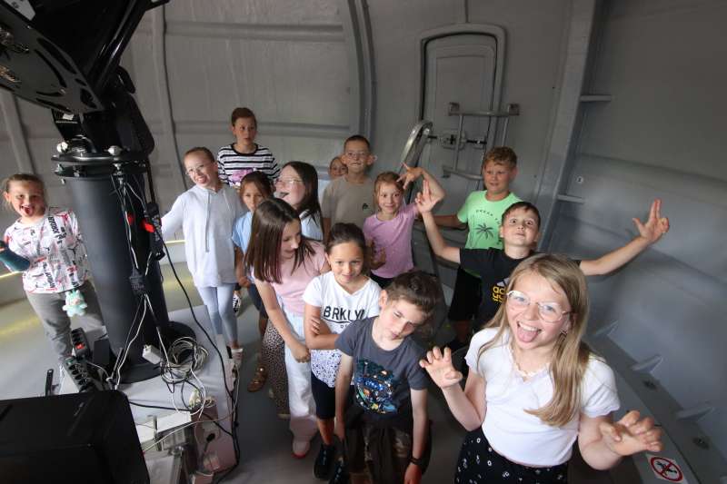 31 lipca 2025r. - Grupa dzieci z półkolonii w obserwatorium, poważne tematy kosmiczne oraz gwiazdozbiory to tylko niektóre z poruszonych tematów.