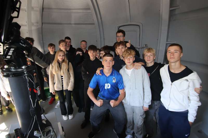 26 września 2025r. - Uczniowie i uczennice I klasy Gastronomii z Zespołu Szkół nr1 w Koszalinie podczas spotkania w obserwatorium. Oprócz Układu Słonecznego poruszyliśmy kilka innych tematów dotyczących bliższego i dalekiego kosmosu, była to też okazja do obserwacji Słońca.