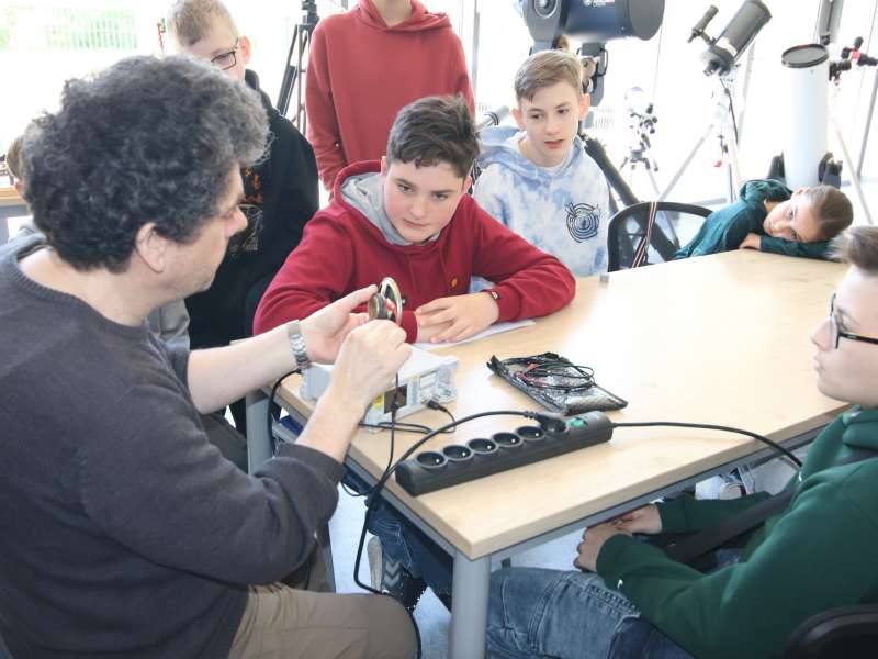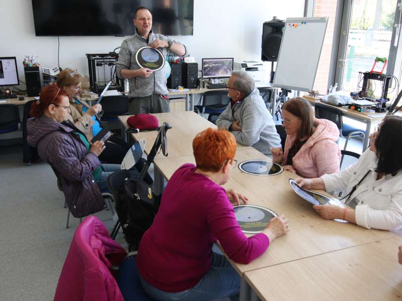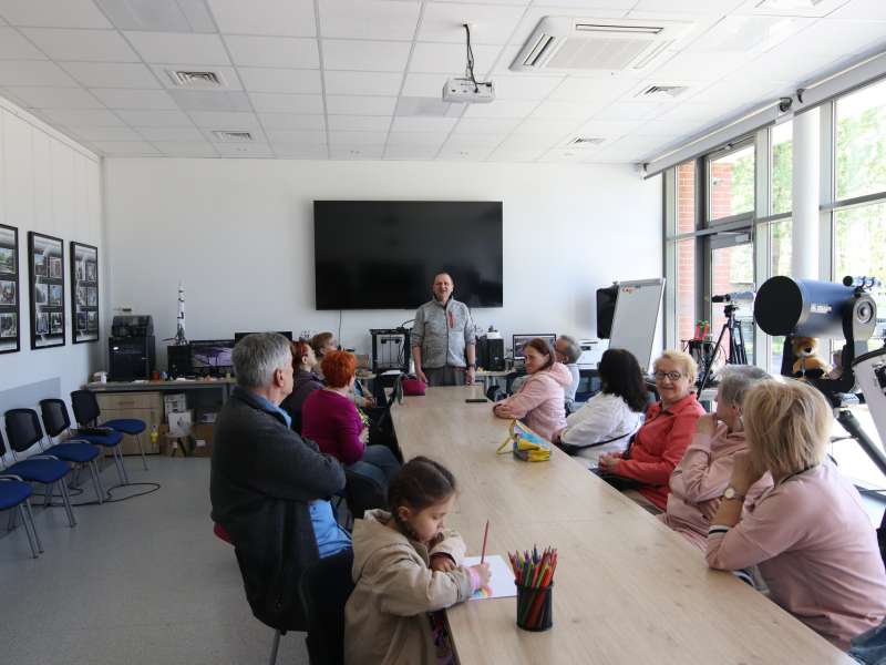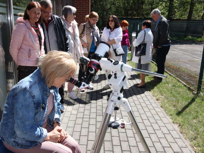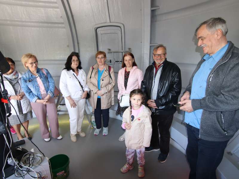 25 kwietnia 2025r. - Seniorzy z Uniwersytetu III Wieku podczas wyprawy do obserwatorium, po części teoretycznej dzięki sprzyjającej pogodzie można było zaobserwować ciekawe zjawiska na Słońcu.