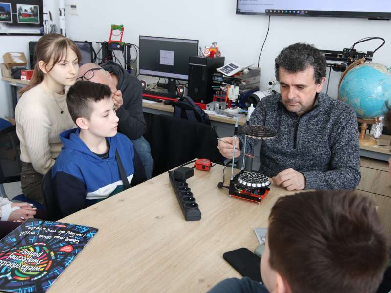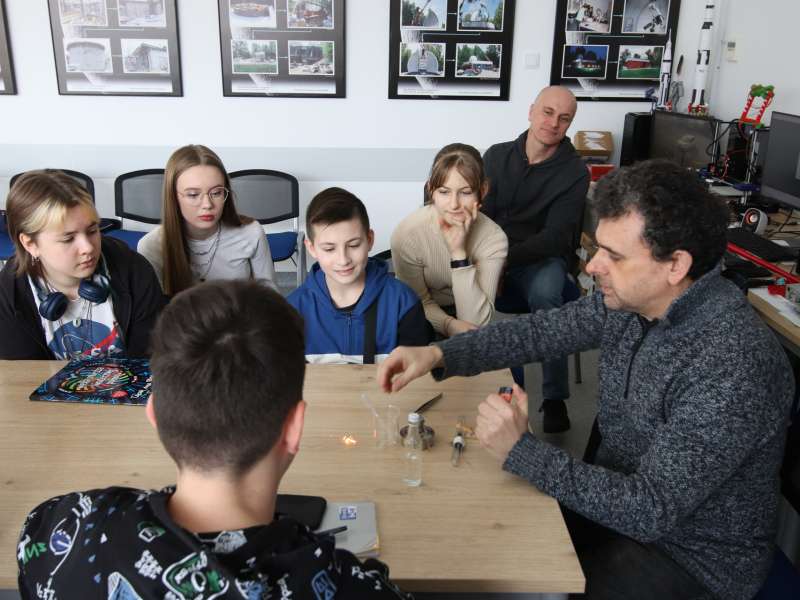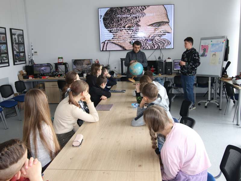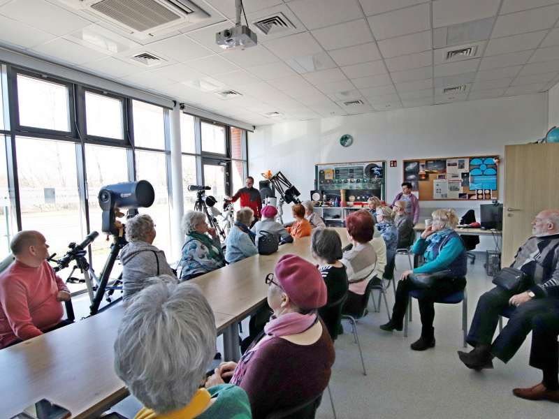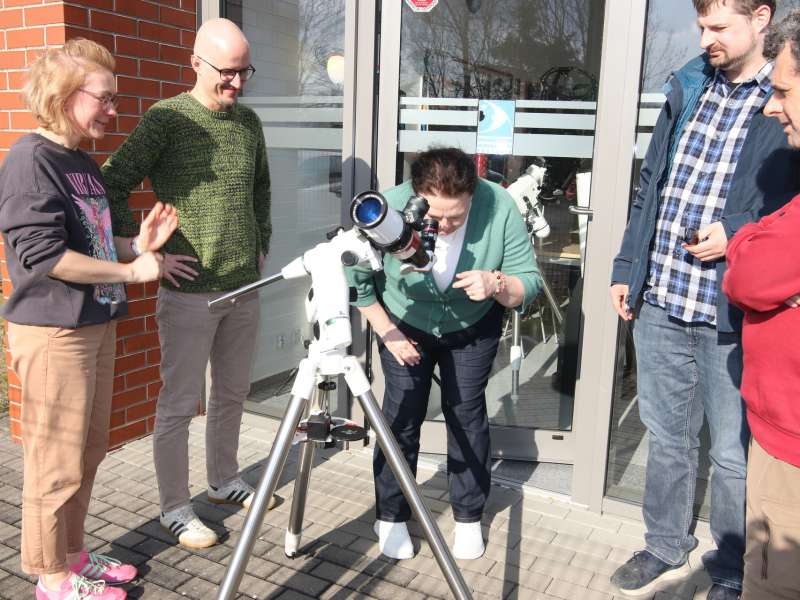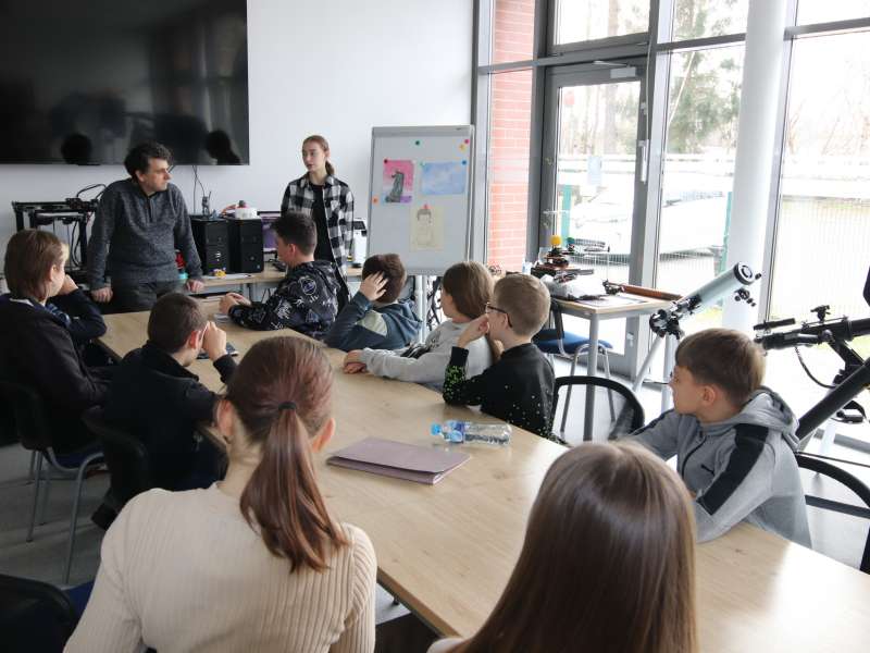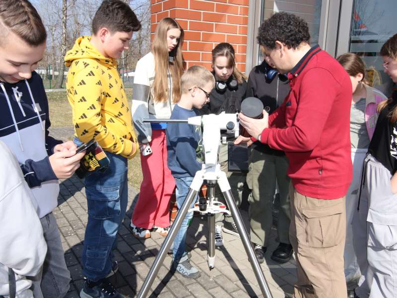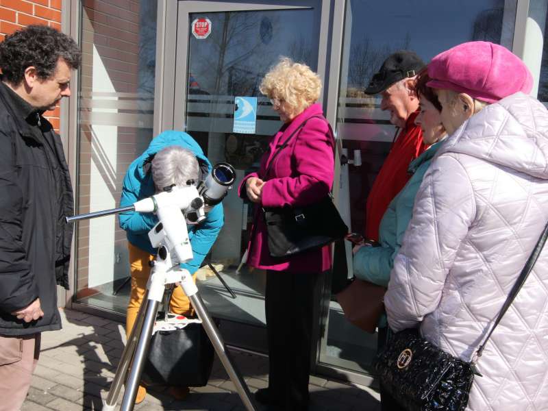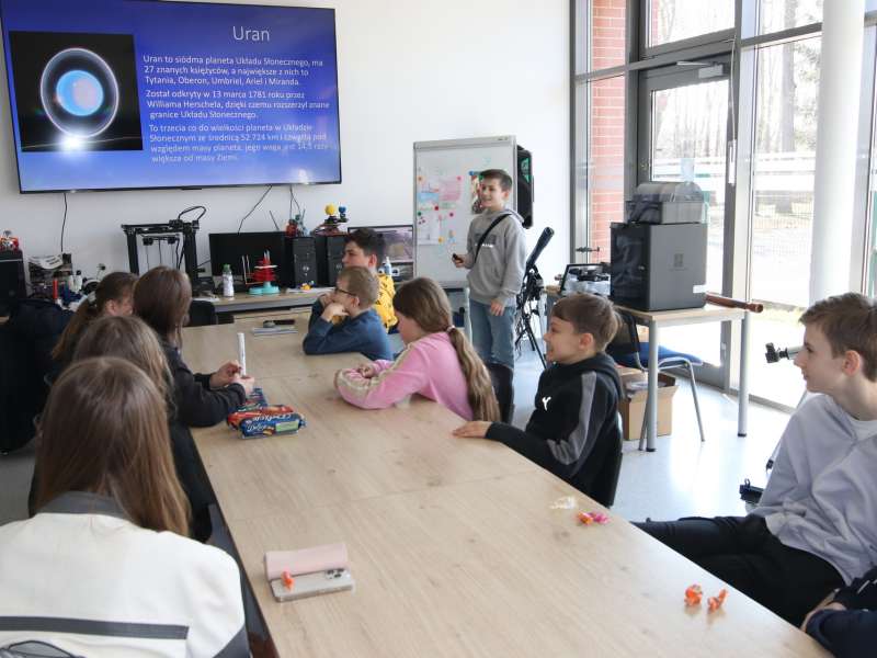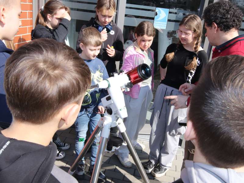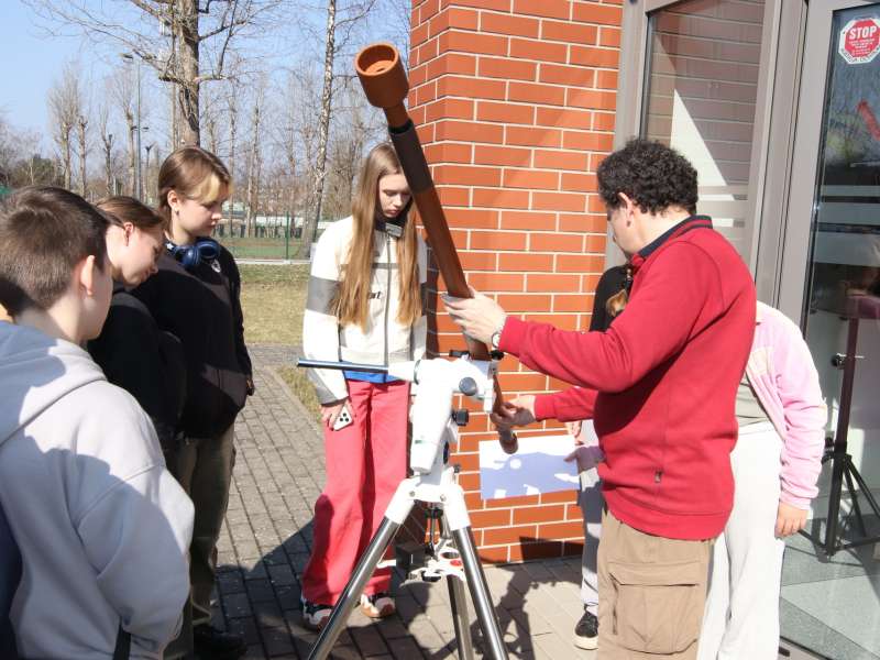 22 marca 2025r. - Sobotnie Koło Astronomiczne, korzystając z ładnej pogody uczyliśmy się bezpiecznych sposobów obserwacji Słońca, omawialiśmy też kwestie związane z powstawaniem energii we wnętrzu naszej gwiazdy i niektórymi sposobami pozyskiwania tej energii na potrzeby ludzkości.