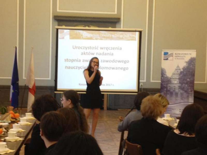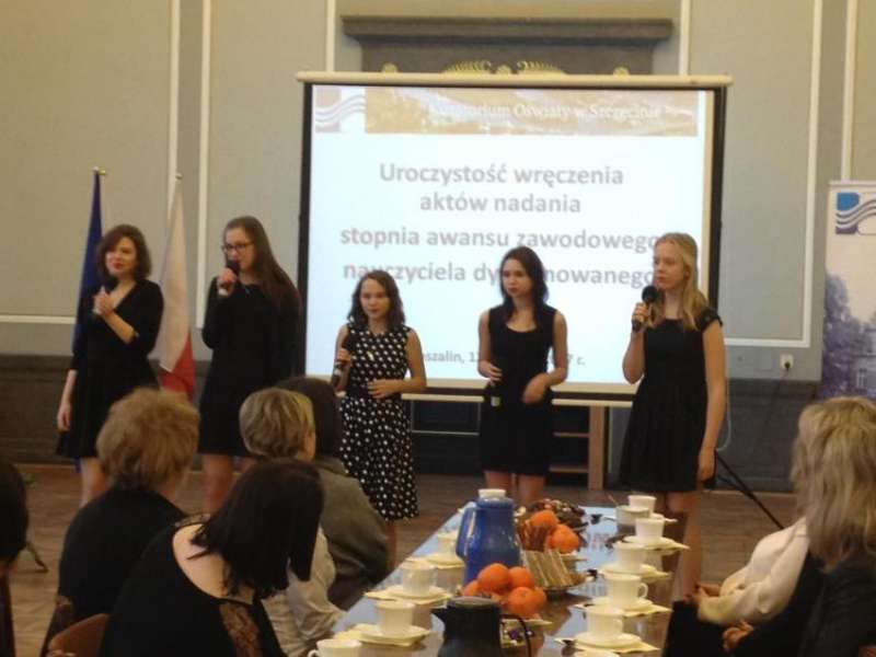 Pałacowy Zespół Czarno na Białym, prowadzony przez Panią Małgorzatę Orłowską wystąpił podczas uroczystości wręczenia aktów nadania stopnia awansu zawodowego nauczyciela dyplomowanego, w Zachodniopomorskim Kuratoraium Oświaty – Delegatura w Koszalinie