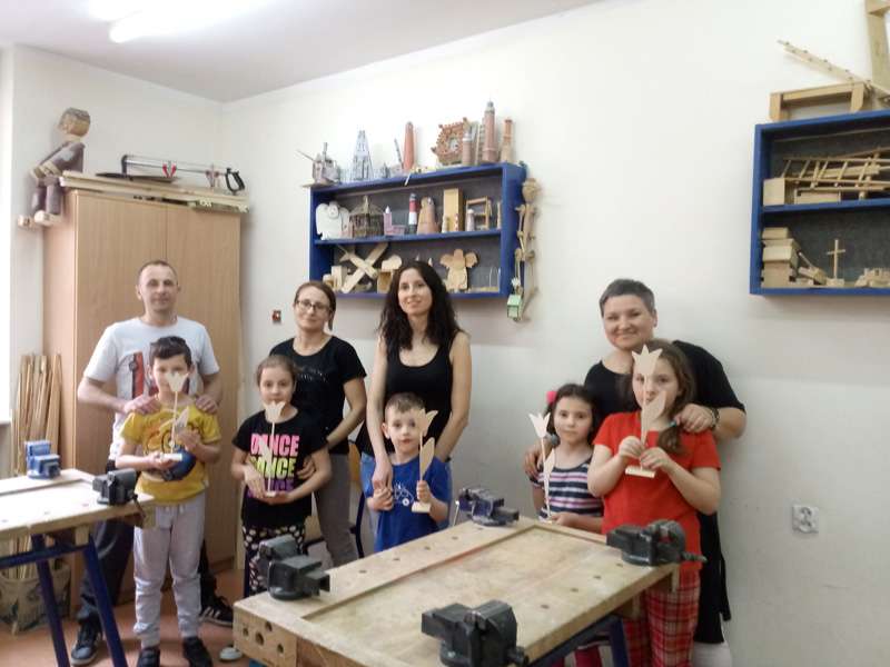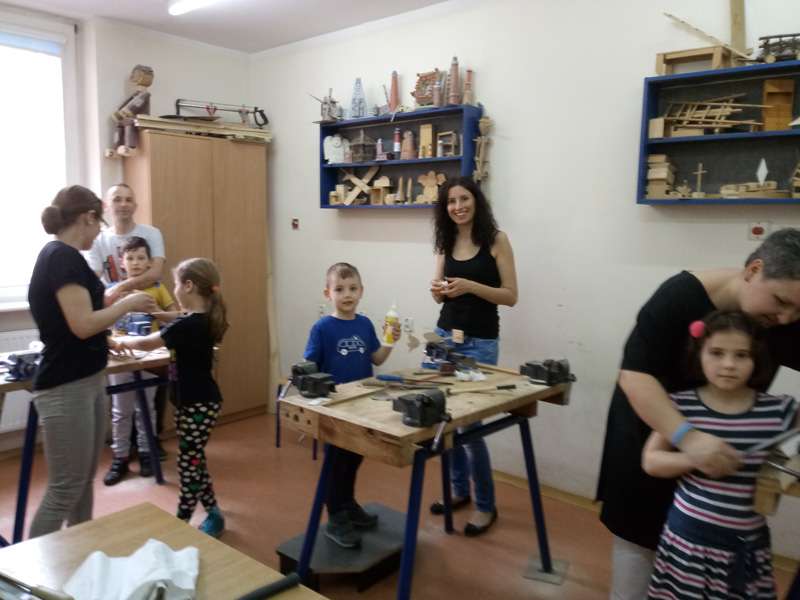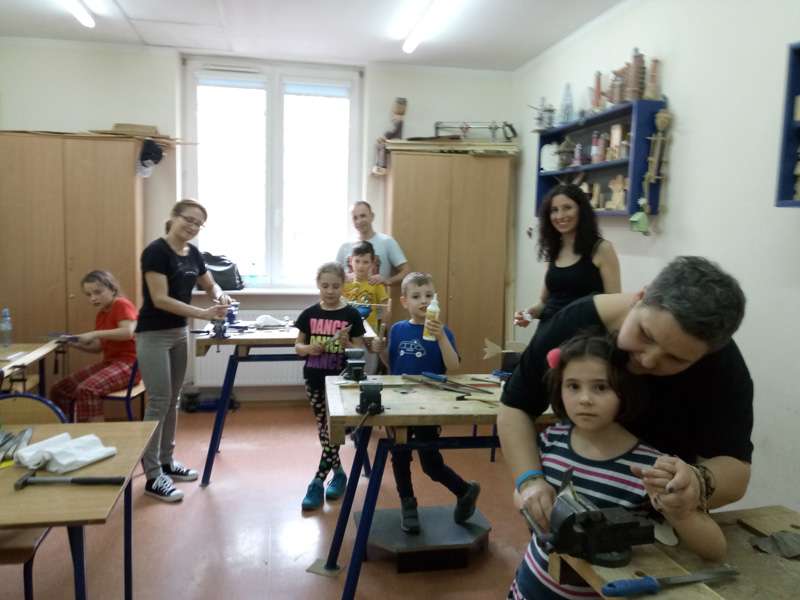 Tym razem w sobotnie przedpołudnie pan Zbyszek Orłowski zaprosił małych i dużych miłośników stukania młotkami, cięcia piłą, wbijania gwoździ, wąchania drewna i zabawy w konstruktorów do pracowni stolarskiej.