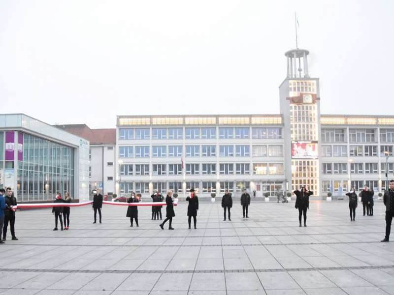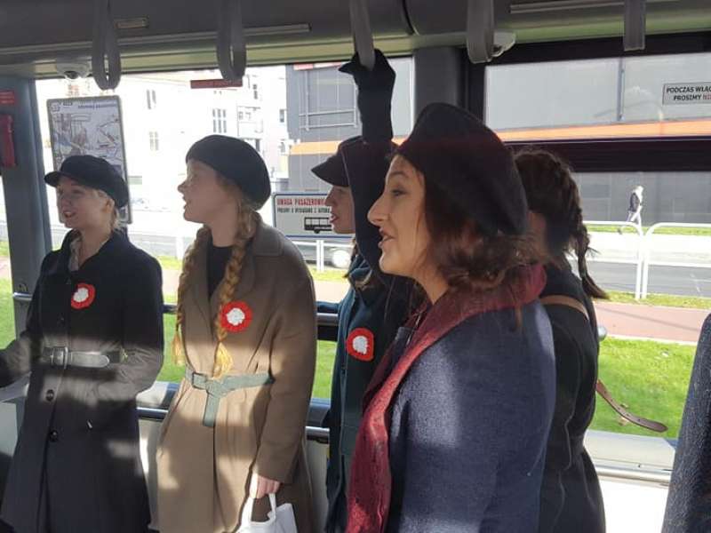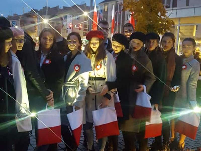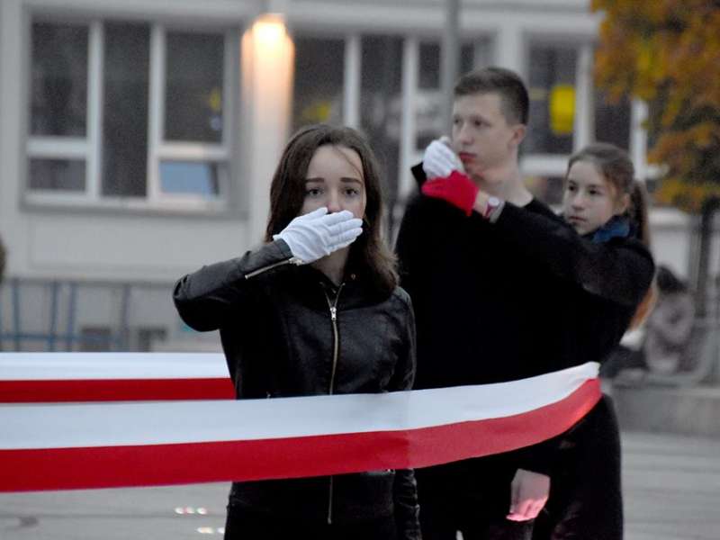 W przestrzeni miejskiej, młodzież prezentowała dzieła literatury polskiej oraz wręczała kokardy w barwach narodowych.
