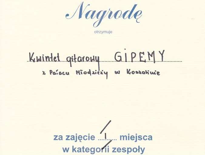 W kategorii zespołowej I miejsce zajął Kwintet GIPEMY w składzie:
