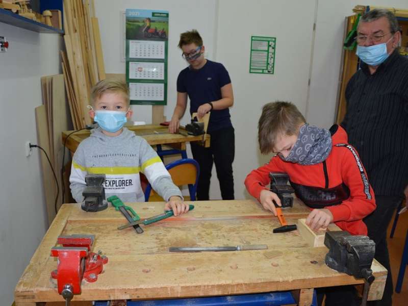 Feryjny zawrót głowy to również zajęcia stolarskie gdzie dzieci samodzielnie tworzyły zabawki z drewna -