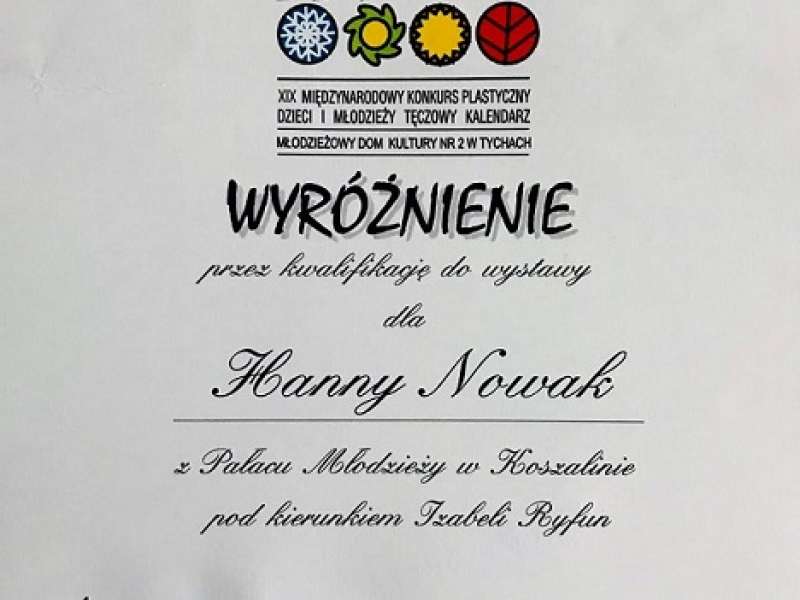 w XIX MIĘDZYNARODOWYM KONKURSIE PLASTYCZNYM DZIECI I MŁODZIEŻY TĘCZOWY KALENDARZ.