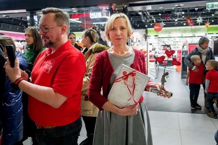 znajdujących się w trudnej sytuacji zdrowotnej, wręczając nam przepiękną statuetkę.