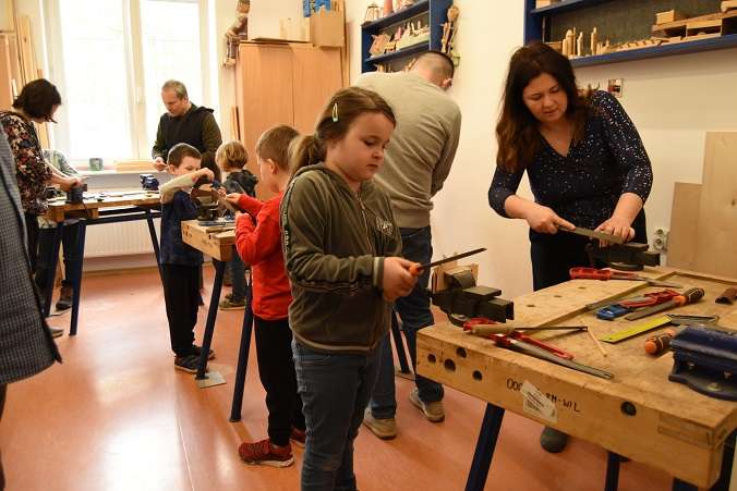 Poszły w ruch dłuta, ostrzałki i inne narzędzia stolarskie.
