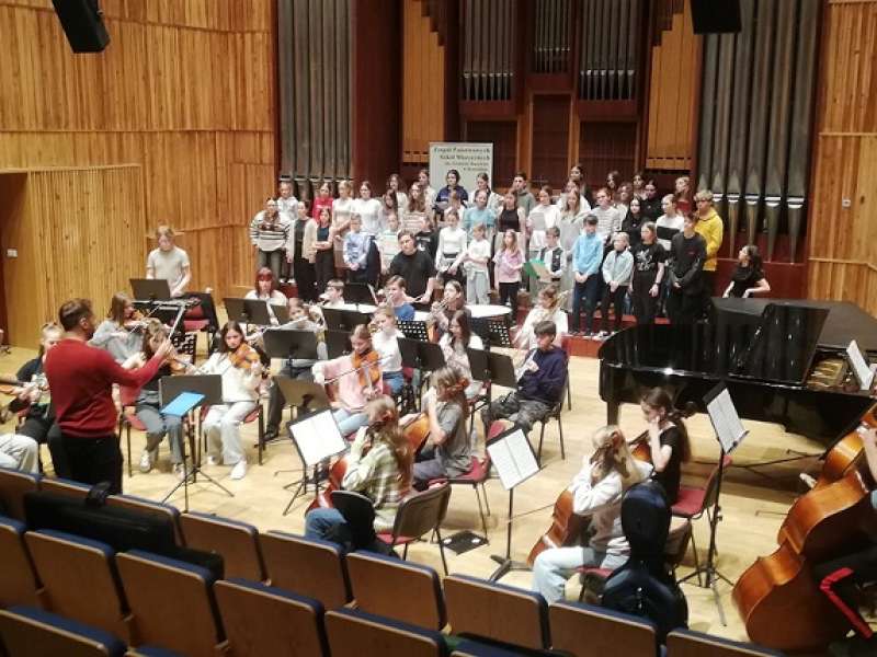 Chór Pałacu Młodzieży wraz z Chórem Dysonans oraz szkolną orkiestrą