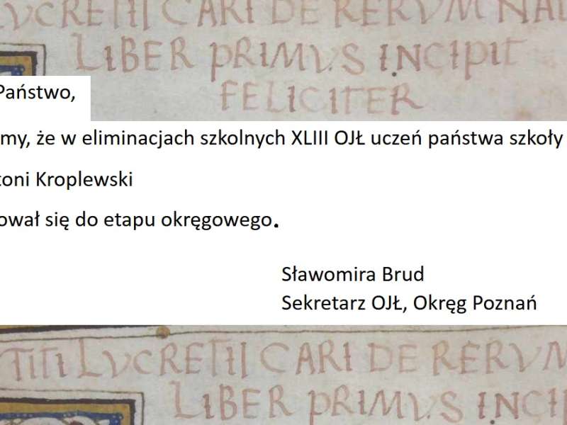 zakwalifikował się do kolejnego etapu Olimpiady Łacińskiej