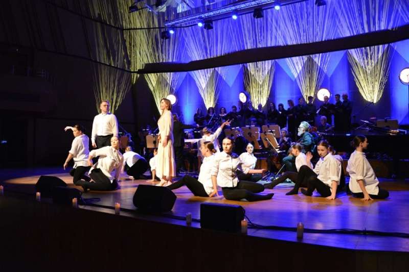 Na scenie wystąpili wokaliści i tancerze Pałacu Młodzieży w Koszalinie oraz Orkiestra Filharmonii Koszalińskiej pod batutą Kamila Szafrana