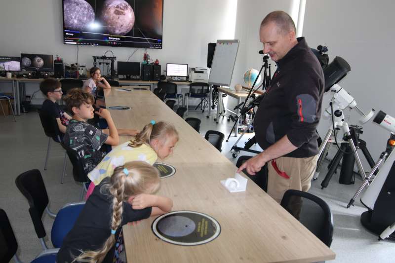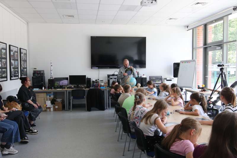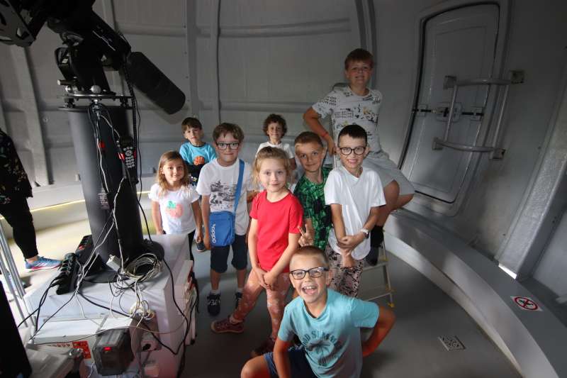 31 lipca 2025r. - Grupa dzieci z półkolonii w obserwatorium, poważne tematy kosmiczne oraz gwiazdozbiory to tylko niektóre z poruszonych tematów.